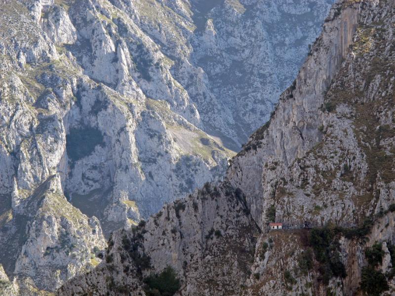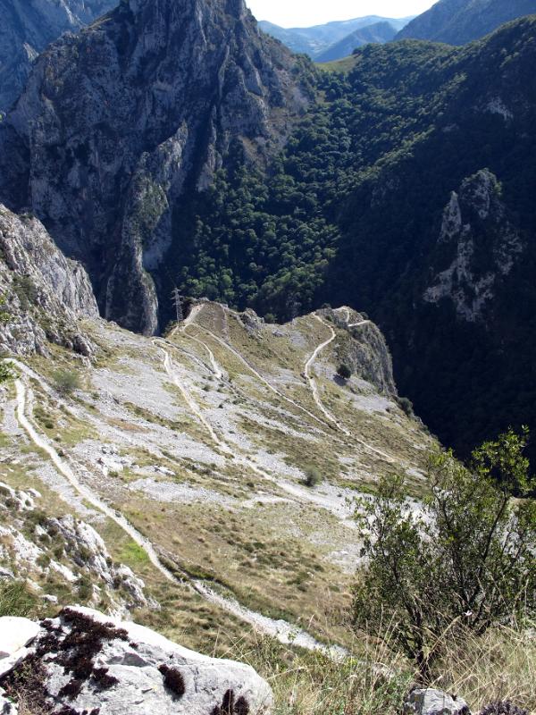 La Ruta de Treviso. A 11.5km walk with a very stiff climb of 800m/2625ft from Urdon to Tresviso, altitude 925m/3034ft, and descent of the same.La Ruta de TrevisoLa Ruta de Treviso: the first of four sets of zig zags.La Ruta de TrevisoLa Ruta de Treviso: Spot the hydroelectric canal and station cut in to the mountain.La Ruta de TrevisoLa Ruta de Treviso: looking back down from the top of the third and most impressive set of zig zags.La Ruta de TrevisoLa Ruta de Treviso: view from the pathLa Ruta de Treviso Fuente DePotes and around